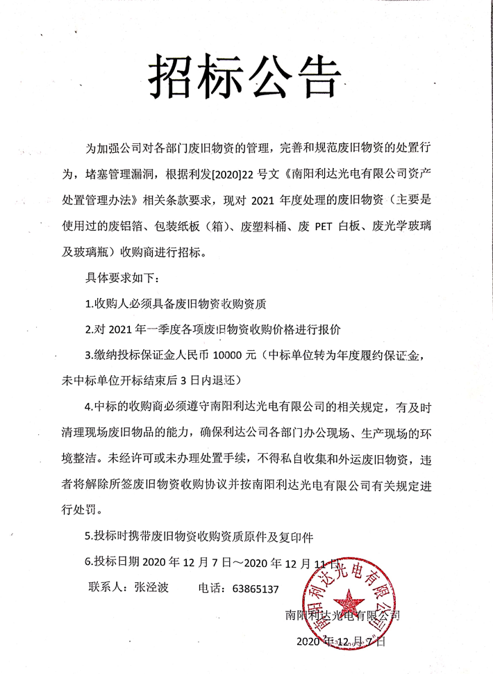 - (2025-07-17)利達光電公開招聘財務(wù)部部長擬錄用人員公示